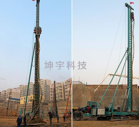 本樁機配用三環(huán)動力頭及鉆桿,可進行CFG鉆孔灌注樁的施工,也可進行鉆孔出土作業(yè)。