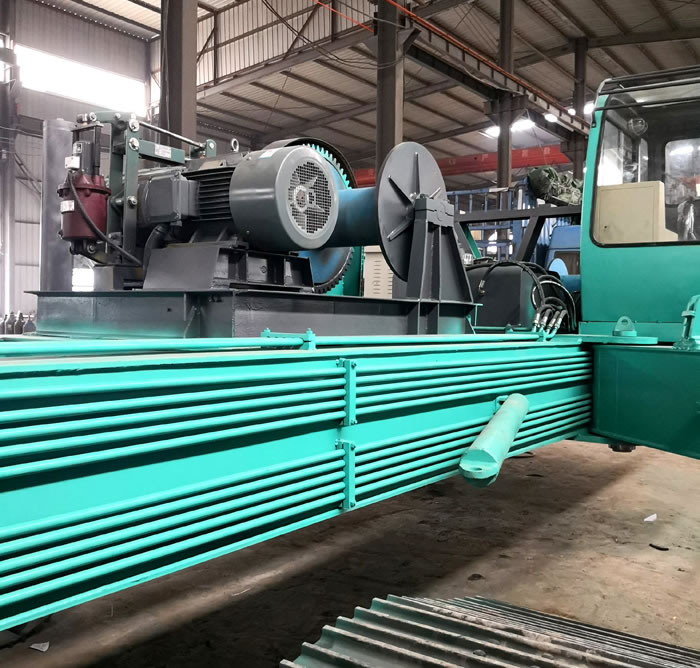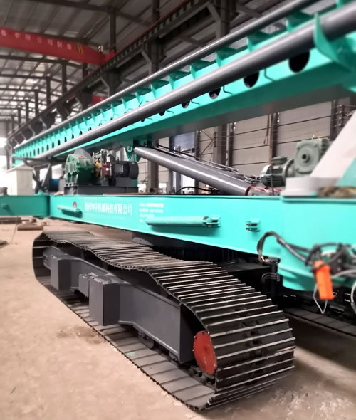 近年來(lái),隨著樁機(jī)市場(chǎng)的不斷發(fā)展,對(duì)樁機(jī)的要求也是日新月異。為了滿(mǎn)足現(xiàn)場(chǎng)對(duì)樁機(jī)的快速短程轉(zhuǎn)場(chǎng)要求,我公司開(kāi)發(fā)了新型液壓馬達(dá)驅(qū)動(dòng)式履帶底盤(pán)樁機(jī)。該樁機(jī)在步履式樁機(jī)的基礎(chǔ)上改進(jìn)發(fā)展而來(lái),在繼承以下特點(diǎn)的基礎(chǔ)上又增加了新的功能特點(diǎn):
