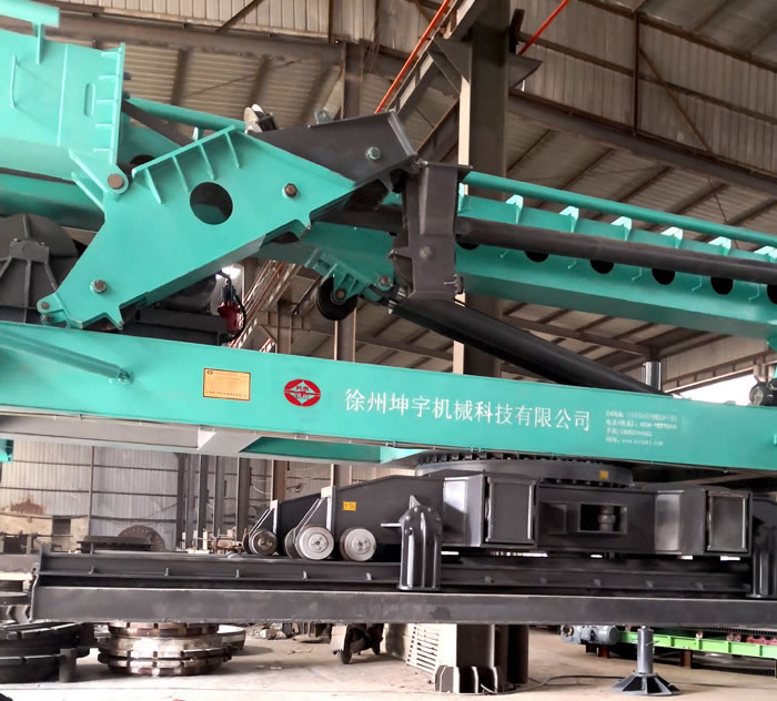 5、底盤采用伸縮機構(gòu),兩步履可實現(xiàn)液壓伸縮,以滿足轉(zhuǎn)場運輸及施工時的不同寬度要求。